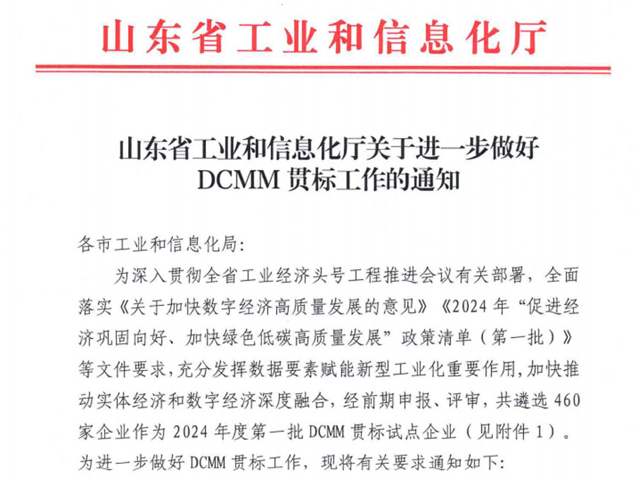 公司入選山東省DCMM貫標試點企業(yè)名單